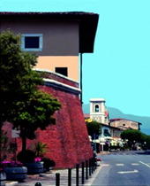 Questa è Pietrasanta vista dall'alto delle sue mura merlate, secolare abbraccio difensivo di una delle più belle cittadine della Versilia.